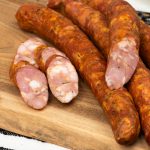 Ingrediente: spata porc, sare, piper negru, piper alb, nucsoara, usturoi, boia afumata, ierburi aromatice, membrana naturala comestibila
