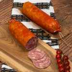 Ingrediente: pulpa de vita Angus, piept de pui, ienibahar, coriandru, sare, membrana artificiala necomestibila